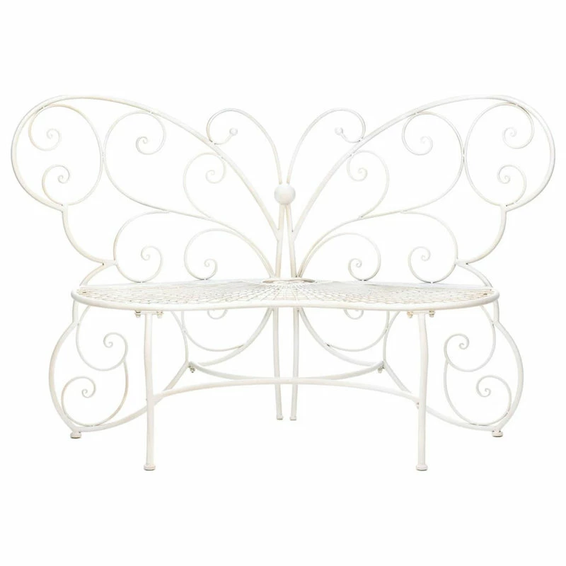Your garden can become a relaxing oasis with help from this beautiful butterfly bench. Featuring white painted iron shaped into a delicate butterfly, this bench is in shady spot under a tree or along a garden path for a place to relax and enjoy nature. Or sit side by side with a friend, sipping tea on a beautiful summer day. Max. weight limit: 440 lbs.