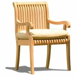This Teak Armchair incorporates a gentle curve and seating panels that have become known as The Wave. The additional gentle Wave curve in the seat panel allows for an unexpected level of comfort for a teak wood chair with no cushion. Time honored practices of mortise and tenon joinery ensure long-lasting excellence for this Outdoor Teak Chair. Made of premium teak from eco-friendly renewable plantations and built to commercial specifications.