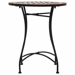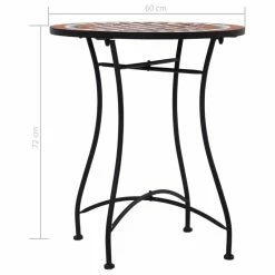 This mosaic table will make a great addition to your balcony or garden, serving as a coffee table to place your drink or any other necessity you need close at hand. Its powder-coated iron frame makes it very sturdy, while the ceramic table top is easy to clean. This table is easy to assemble. Please note this table is not suitable to be left outside in cold condition.