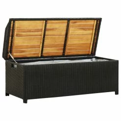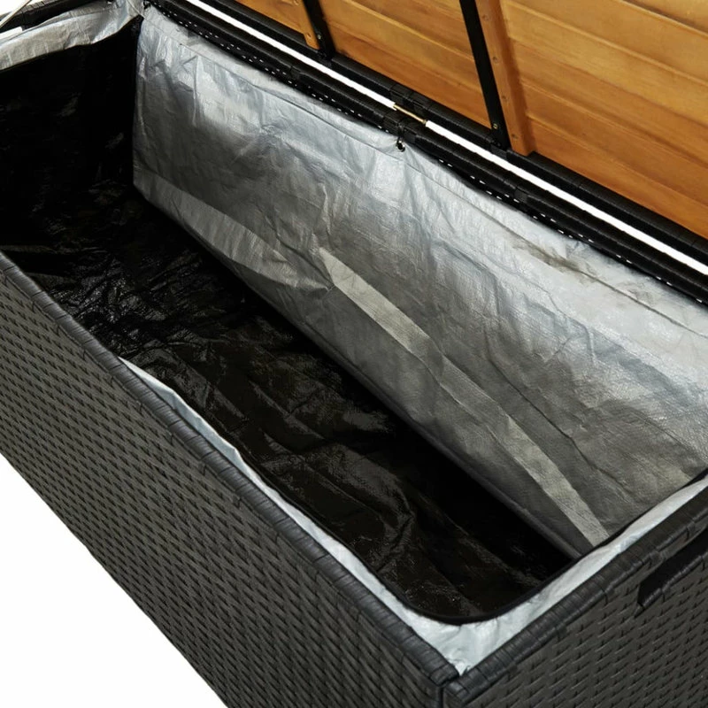 Are you looking for an attractive and versatile patio storage solution? Then this poly rattan storage bench is an ideal choice for you! Designed with a spacious trunk, it is big enough to store garden items like: furniture cushions, pillows, extra blankets, pool toys and gardening supplies. This patio bench is constructed from poly rattan, solid acacia wood slats and steel frame, which is durable and weather resistant for years of reliable use. It has a lining, which will protect the contents from dust and moisture. Thanks to the elevated feet, this outdoor bench ensures well air circulation underneath and keeps essentials dry and clean. It is easy to wipe clean with damp cloth. The patio storage bench is easy to assemble. Note: Please cover the pillow box with waterproof cloth/material to prevent rain from entering the box if it rains.