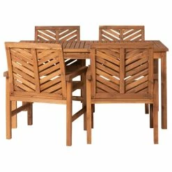 Keep it classy with this outdoor dining set. Whether you’re looking for something to seat your family of four or entertain your close friends with, this solid wood set does the trick. It includes a sturdy table that features an umbrella hole as well as four comfortable chairs that have a chevron pattern on the back and seat. The subtle charm and long-lasting function of this patio dining set are bound to please you throughout the seasons.