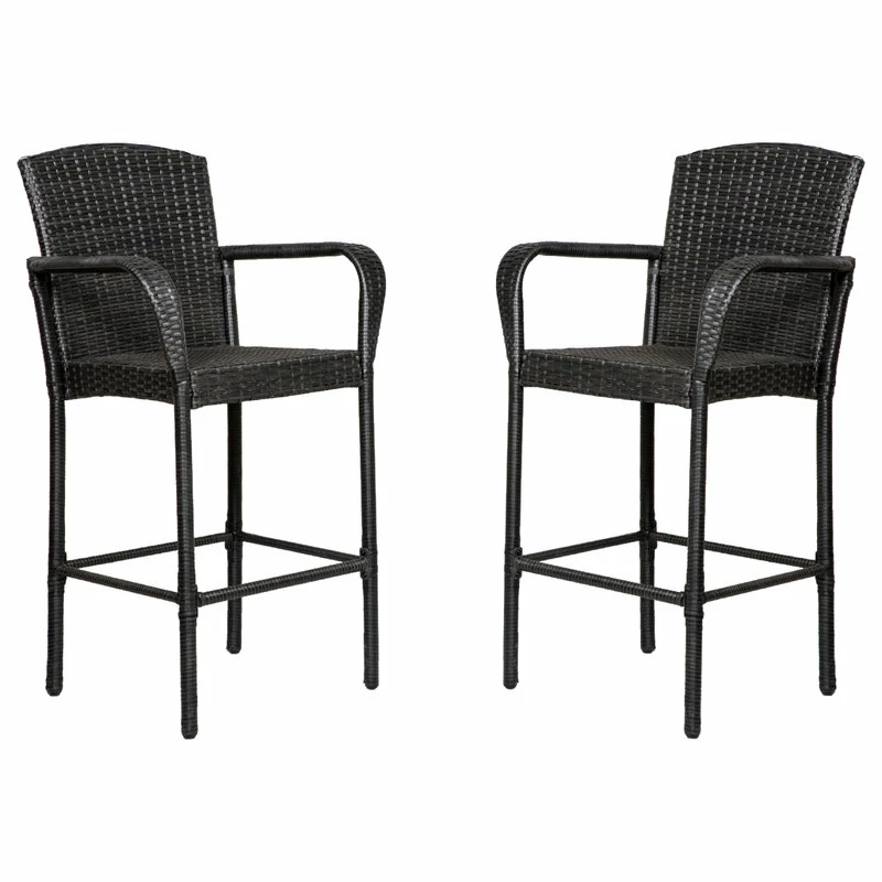 Promo 🔥 Westin Trends WestinTrends 47″ All Weather Outdoor Patio Wicker Barstool (Set Of 2), Black 🌟