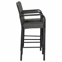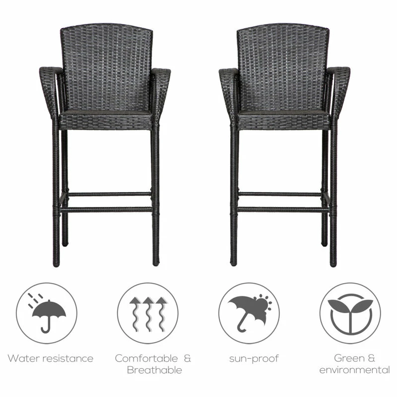 A must-have for your home and outdoor bar, this 47.5 Inch patio bar stool set offers you endless comfort and style with its smooth rattan seat. Its high quality rattan and Aluminum steel construction and uniquely understated craftsmanship makes it the perfect addition to any kitchen, backyard, or patio bar space. Crafted with you and your family in mind, this patio bar stool will indulge you in long lasting relaxation with its weather resistant wicker design. Featuring rattan wicker seat, solid Aluminum steel frame, and conveniently placed footrest.