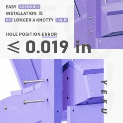 ASSEMBLING ADIRONDACK CHAIR CAN BE SO EASY?:Adirondack chairs after a reasonable design, only 6 assembled modules, 5 steps can easily complete the installation, with electric screwdriver 15 minutes to get a beautiful chair. Deviation for all reserved hole positions is0.019in. Easier assembly enables you to handle it all by yourself and saves more time for your family!